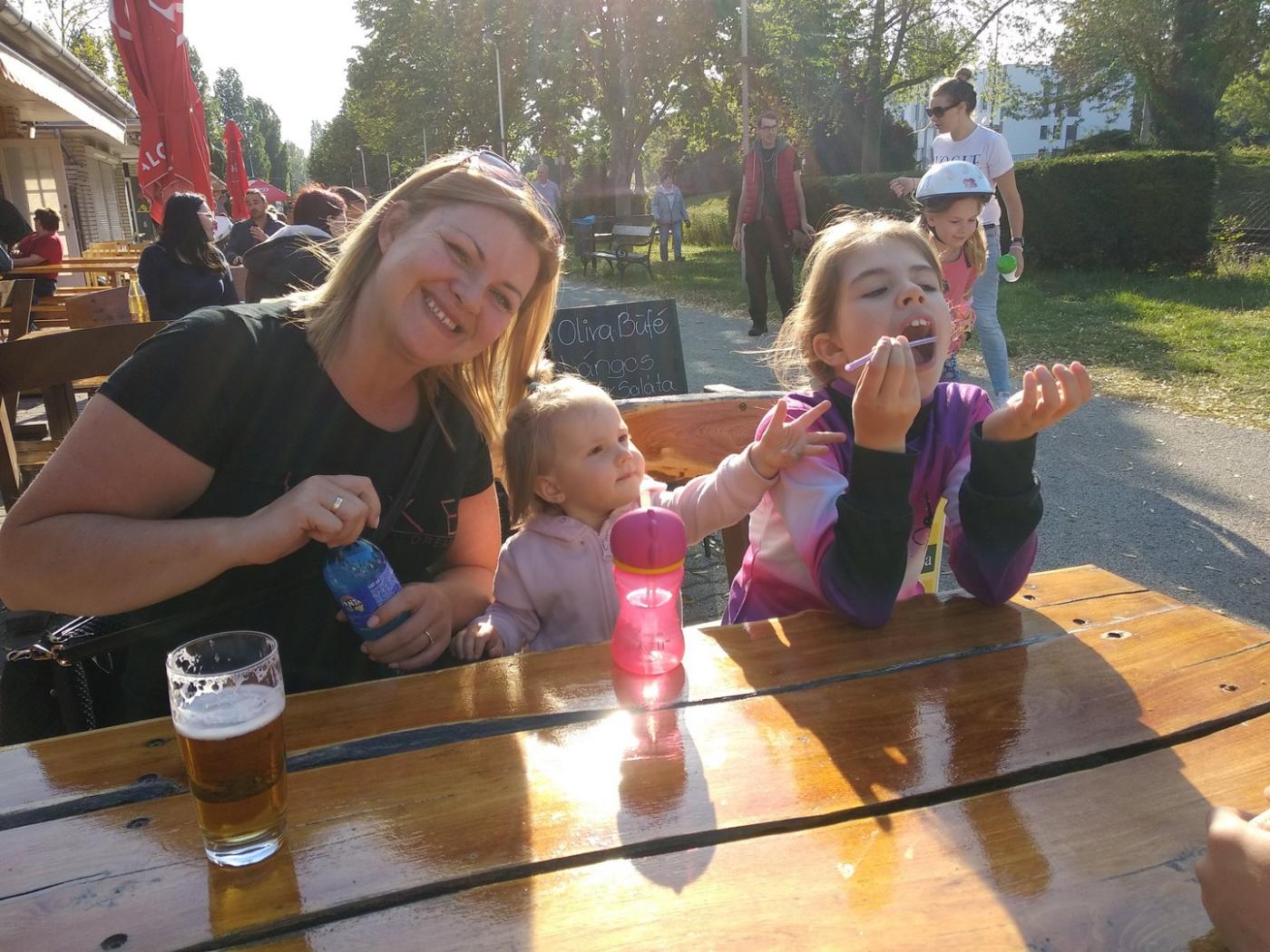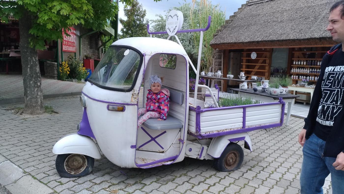 Kasia zwykła mówić, że wszędzie gdzie my jedziemy tam jest piękna pogoda i słowa te sprawdzają się. Jednak jak zwykle prawie do samego końca czekaliśmy z rezerwacją, aby mieć pewność co do pogody. Trasa z Bielska-Białej nad Balaton to około 400 km, więc spokojnie wyjechaliśmy sobie po 8 aby być na miejscu przed 16. Wybrałem drogę, którą 7 lat temu ze znajomymi przejechaliśmy na rowerach. Fajnie było przypomnieć sobie te wszystkie miejsca i podjazdy. Przed wyjazdem nagrałem super składankę piosenek dla dzieci, z czego Kinia była bardzo zadowolona, a my mogliśmy razem sobie pośpiewać. Kini najlepiej wychodziła piosenka o pingwinie co chodzi tip-topami. Przez następne dni siedziała nam ona w głowie i co chwilę ktoś nucił "tip-top, tip-top".