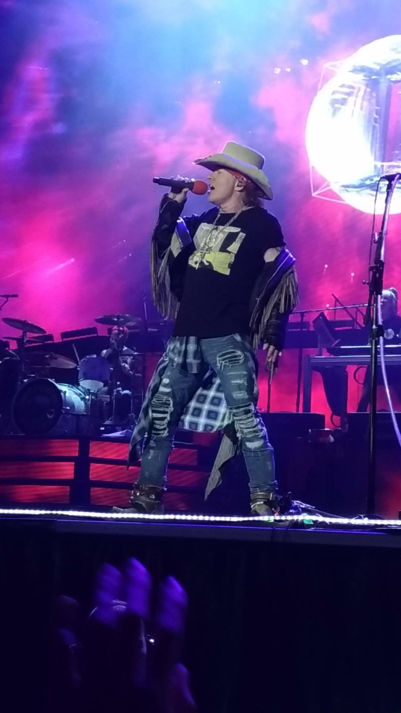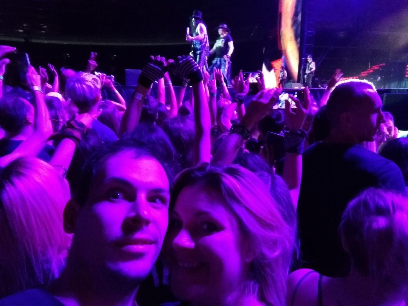 Kiedy inny słuchali Backstreet Boysów czy innych Boys Bandów, Kasia po kryjomu przebierała się za Axla i przed lustrem dawała koncerty Gunsów. Oglądając ich teledyski wiedziała, że teksty są skierowane właśnie do niej, a Axl patrzy dokładnie na nią. Podobnie było ze Slashem. Dlatego też kiedy usłyszała o ponownym zejściu się zespołu i trasie koncertowej z niecierpliwością czekała na informacje o koncercie w Polsce. Dwa lata temu byliśmy na koncercie Slasha ale zobaczyć wszystkich Gunsów to jednak jeszcze większe przeżycie. Na koncert do Gdańska rok temu nie mieliśmy szans jechać, bo Kasia była w ciąży, więc gdy tylko pojawiła się informacja o koncercie w Chorzowie kupiliśmy dwa bilety jak najbliżej sceny, bo nie wiadomo czy jeszcze kiedyś zobaczymy ich w takim składzie. Bilety kupiliśmy w grudniu, także trochę musieliśmy poczekać ale czas szybko mija. Koncert odbywał się na Stadionie Śląskim więc nie mieliśmy daleko. Dzieciakom załatwiliśmy opiekę w postaci babci, której bardzo dziękujemy, i pojechaliśmy.