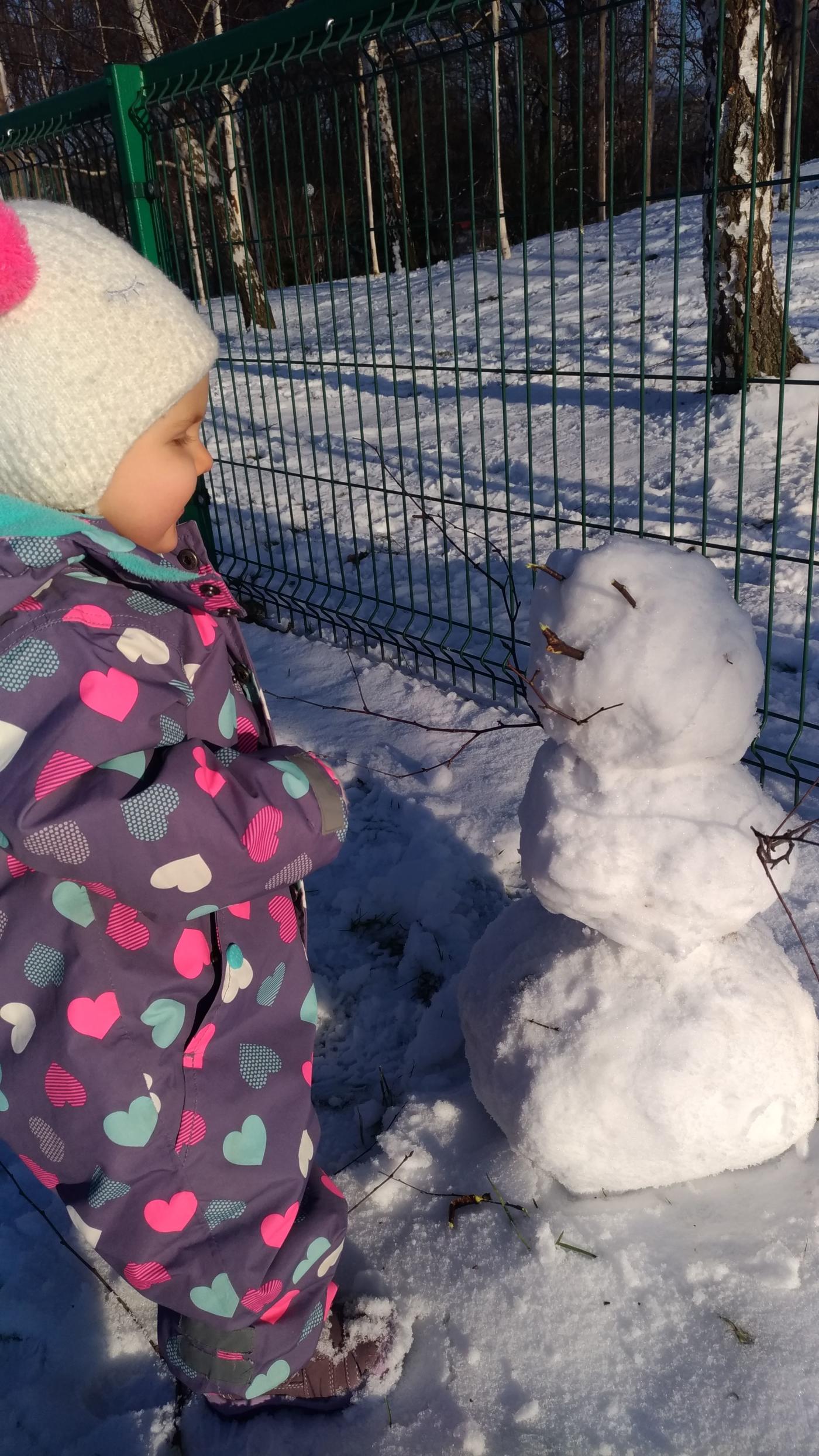 Zima nie obfitowała u nas w dużą ilość wycieczek jednak staraliśmy się na zapaść w sen zimowy i gdy tylko nadarzała się okazja uciekaliśmy z domu. Kinia w tym roku miała pierwszą okazję do zabaw na śniegu i nie omieszkała z niej skorzystać. Efektem tego był jej pierwszy bałwan. Tak na marginesie to bardzo spodobało jej się to słowo i ciągle słyszeliśmy "bał bał".
