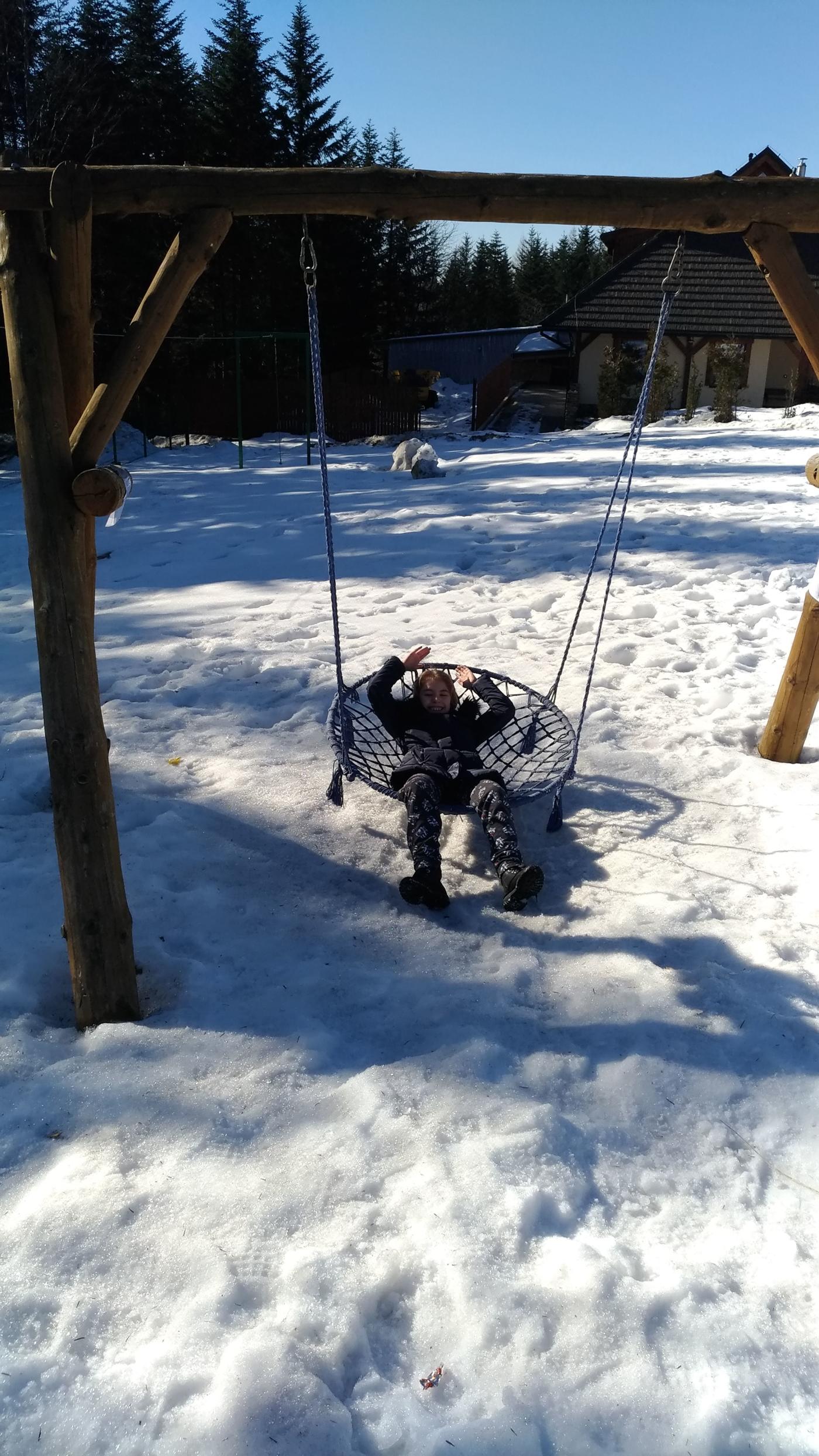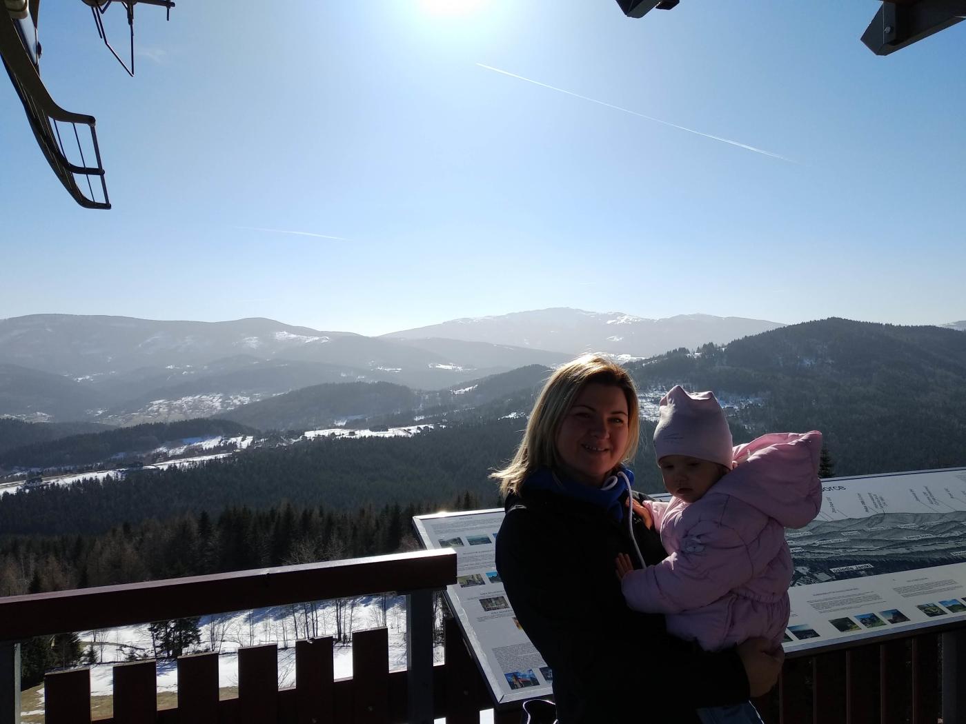 Dotarcie na miejsce okazało się trochę trudniejsze niż myśleliśmy. Mam tu na myśli drogę prowadzącą do hotelu. Jest to stara wąska droga o nachyleniu kilkunastu procent, na której co chwilę trzeba się z kimś mijać. Nie wiem jak sytuacja wygląda tu w czasie opadów śniegu, ale bez łańcuchów to raczej ani rusz. Na szczęście tego dnia była odśnieżona i sucha dzięki czemu po kilku minutach byliśmy już na parkingu. Swoje kroki skierowaliśmy w stronę mini zoo. Rzeczywiście było to "mini" zoo składające się z kilkunastu mało interesujących kóz i lam. Obeszliśmy ich zagrodę wokoło i udaliśmy się na wierzę. Widoki były całkiem niezłe. Niestety to koniec atrakcji jeżeli nie korzysta się z oferty hotelu.