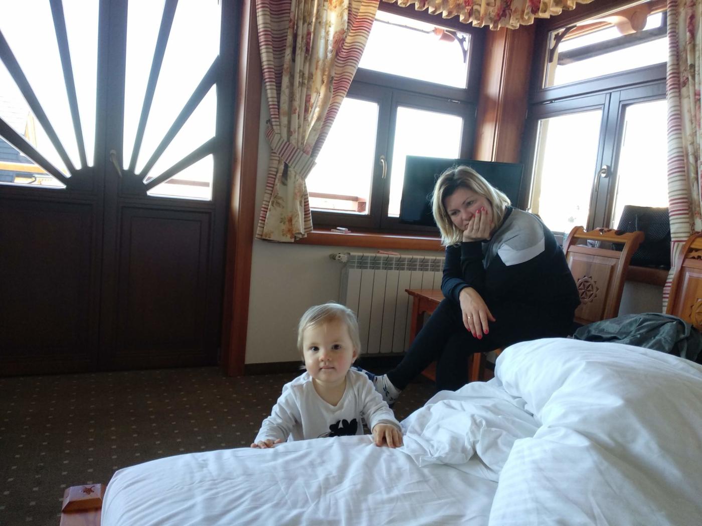 Jakież było moje zdziwienie, gdy po dotarciu do hotelu i po wejściu pod prysznic nic się nie zmieniło. Z trudnością, łapiąc się ścian doczłapałem do łóżka. To już był totalny koniec. Kasia załamana, Kinga chce się bawić ze mną, a ja nie jestem w stanie nic zrobić. Na szybko szukamy informacji w internecie i u znajomych. Jednak nic sensownego nie znaleźliśmy. Zostaje szpital. Jednak jesteśmy w Bukowinie i jak bym miał tu gdzieś zostać w szpitalu to lipa trochę. No więc podejmuję decyzje, że dziś jeszcze przeczekam i jutro najwyżej jak nie będzie lepiej to przeleżę cały dzień, a we wtorek rano udam się do lekarza. Za podjętą decyzję postanowiliśmy wznieść toast.